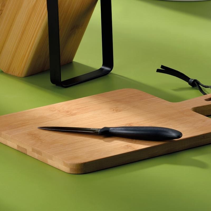 Ostrá čepel umožňuje přesné a čisté řezy, což oceníte při krájení zeleniny, masa i pečiva. Ergonomická rukojeť je navržena tak, aby se dobře držela a minimalizovala únavu ruky i při delším používání. Moderní černý design se snadno kombinuje s různými kuchyňskými styly a přidává estetickou hodnotu.
