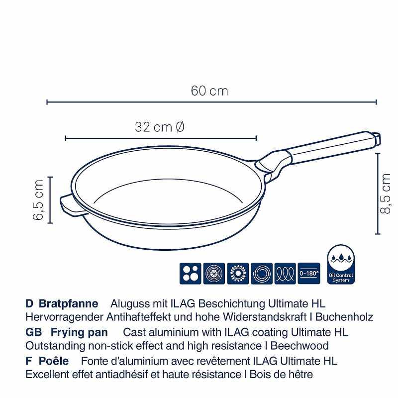 Hliníková slitina s nepřilnavým povrchem Rukojeť z bukového dřeva s certifikací FSC, 32 cm, 6,5 cm v40254571008642495