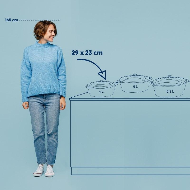 - Dokonalé rozložení tepla a udržení tepla: Litina zajišťuje rovnoměrné rozložení tepla, od středu do stran. Vaše pokrmy budou dokonale uvařené a zachovají si plnou chuť.