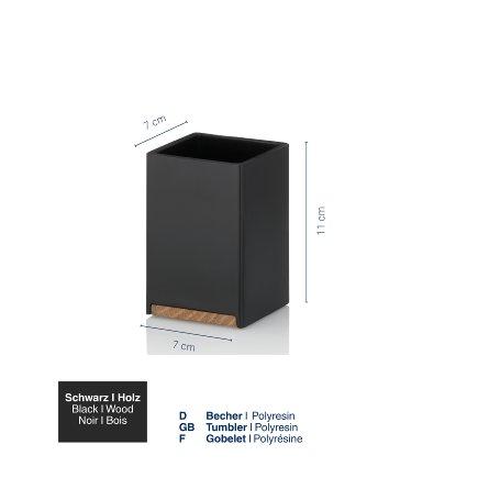 Černý kelímek na zubní kartáčky ze série Cube od kela. Díky hranatému základnímu tvaru a solidně vypadající optice v kombinaci s černou barvou získává hrnek osobitý vzhled. Rozměry: 7x7x11 cm Polyresin, matná černá, dubové dřevo 7x7cm, 11cm v4025457236877415