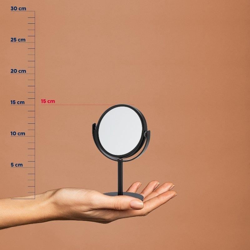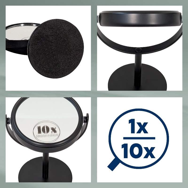 Atraktivní a praktické: malé stojací zrcátko Selena s 1x a 10x zvětšením je ideální pro detaily. Černé zrcadlo je kovové a má průměr 8 cm (zrcadlová plocha 7 cm) a je 15 cm vysoké. Zrcadlová plocha je otočná! Matný kov Otočný jednoduchý/10x zvětšení, 15 cm v, 8 cm 7 cm zrcadlový povrch4025457206566425
