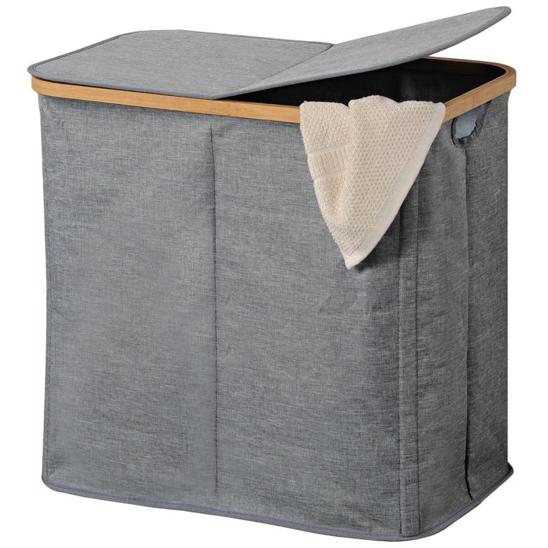 Tento koš na prádlo je elegantním a praktickým řešením pro ukládání špinavého prádla v domácnosti. Koš je vybaven dvěma přihrádkami, které umožňují efektivní rozdělení prádla. Stabilní dřevěný rám z bambusu poskytuje koši pevnou a odolnou konstrukci. Dva úchyty umožňují pohodlné přenášení koše.Hlavní výhody koše na prádlo: