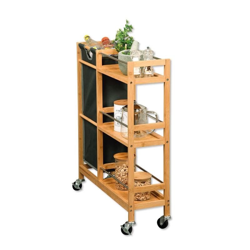 KESPER 24857 Police na kolečkách s košem na lahve, 78 x 20 x 68 cm, bambus