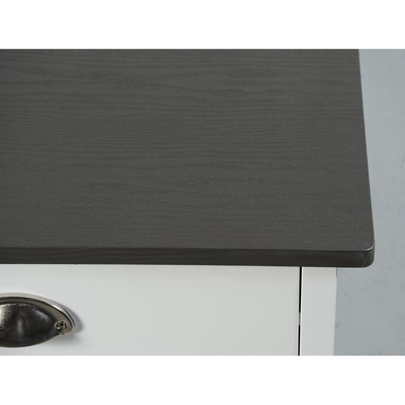 Funkční a elegantní kuchyňský vozík s odpadkovým košem je ideálním doplňkem pro každou kuchyni. Vyrobený z FSC® certifikované dřevovláknité desky s bílým lakovaným povrchem a šedou dekorativní deskou nabízí moderní vzhled a snadnou údržbu. Vozík obsahuje zásuvku, skříňku a dva odnímatelné koše s upevňovacími kroužky na pytle. Díky čtyřem otočným kolečkům, z nichž dvě jsou uzamykatelná, je snadno přemístitelný a stabilní.• Hlavní výhody kuchyňského vozíku: