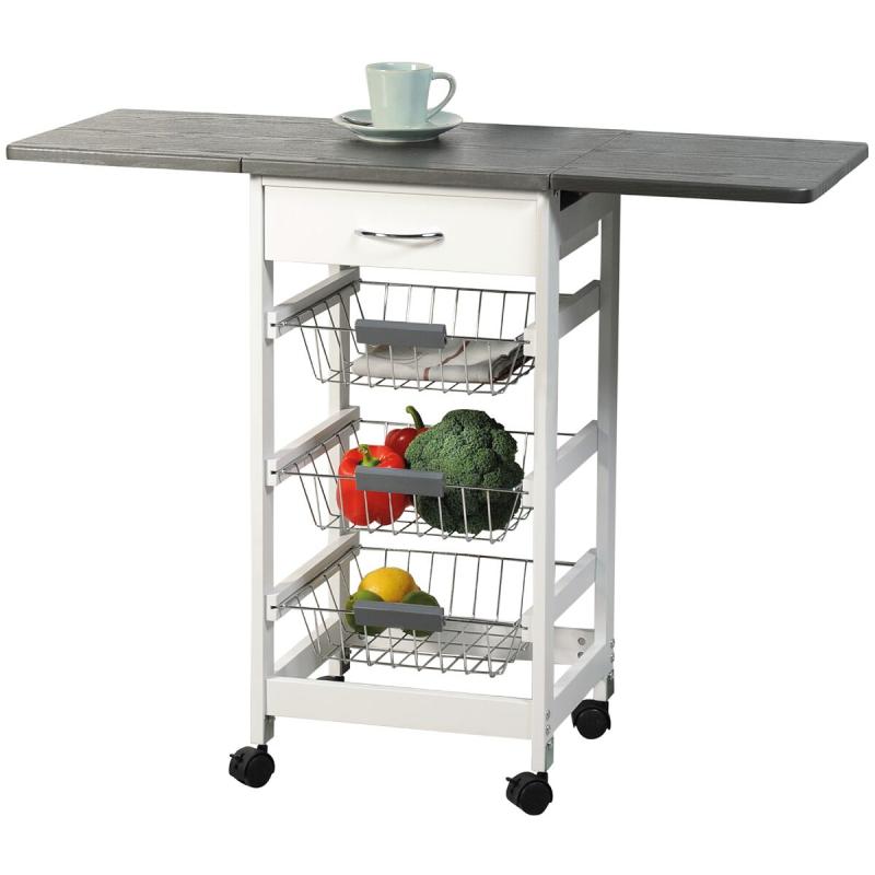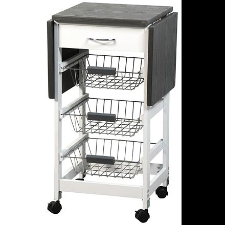 Kuchyňský vozík je navržen tak, aby usnadnil a zpříjemnil práci v kuchyni. Tento multifunkční vozík je vybaven třemi zásuvkovými koši, jednou zásuvkou a dvěma rozkládacími pracovními deskami, které mohou rozšířit pracovní plochu z 45 cm až na 97 cm. Zobrazit celý popis