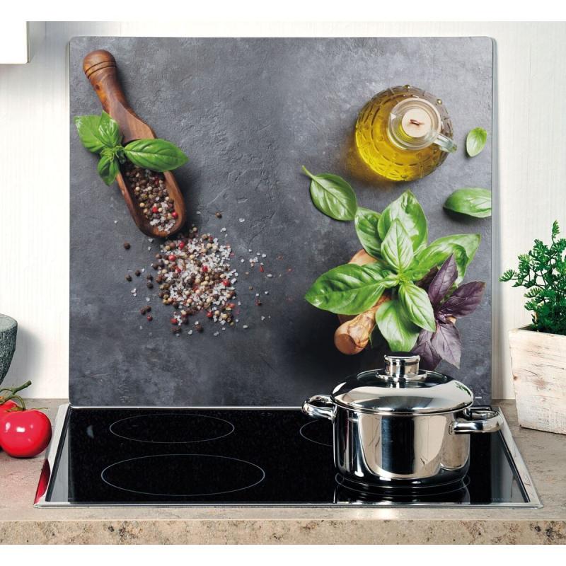 KESPER 36584 Víceúčelová krájecí deska 56 x 50 cm, sklo, motiv bazalka