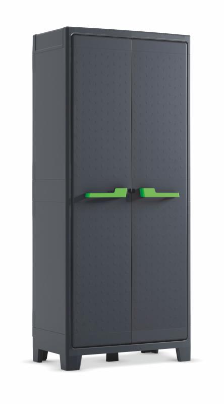 Bezúdržbová skříň pro využití ve venkovním i vnitřním prostředí, snadná montáž 4 poliček, nosnost jedné police 30 kg, zvýšené nožičky pro snadné čištění podlah, možnost uzamčení, vysoká odolnost. PP pryskyřice. Černá. Zobrazit celý popis