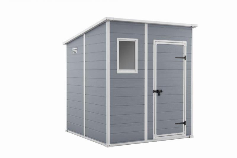 Zahradní domek pro skladování zahradního i dílenského nářadí a dalšího vybavení, 1,835 x 2,00 x 1,85 m, pultová střecha vydrží zatížení až do 75 kg/m2, podlahový panel s výdrží až 150 kg/m2, 16mm dvojité stěny, ventilační systém. Šedá barva.Máte zahradní náčiní všude po domě nebo po zahradě a ve vaší garáži již není místo? Zahradní domek Manor 6 x 6 má optimální velikost a je velice snadné jej sestavit. Domek je vhodný pro skladování zahradního nářadí, ale také pro uchování sportovního náčiní, bazénové technologie a vybavení, dílenského nářadí i vybavení pro grilování, včetně rozměrnějších plynových grilů.