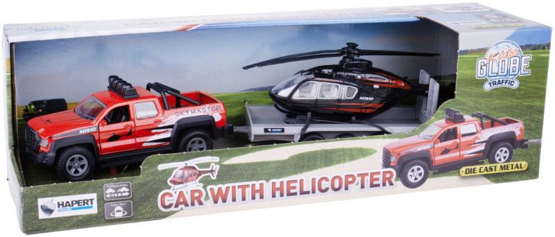 Kids globe Traffic auto terénní set s přívěsem a vrtulníkem PB kov