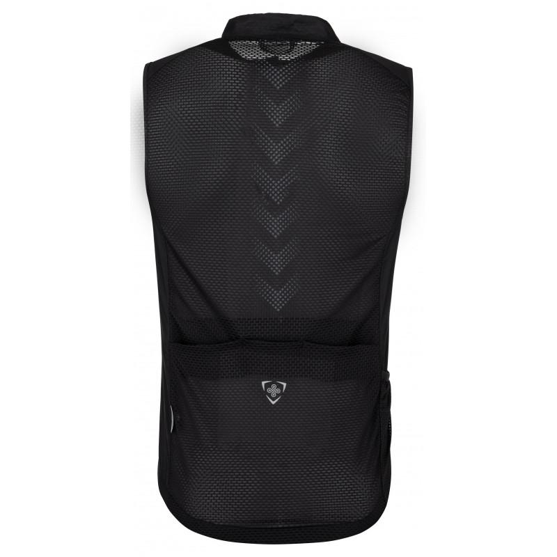Síťovaný materiál na zádech zlepšuje mikroventilaci. Hmotnost vesty ve velikosti M je pouhých 90 g a je sbalitelná do boční kapsy. Výrazné reflexní prvky vepředu a na zádech zlepšují viditelnost za tmy a šera. Na zadním dílu jsou dva praktické přístupové otvory do kapes na cyklo dresu. Kilpi FLOW-M je v nabídce v několika barvách.