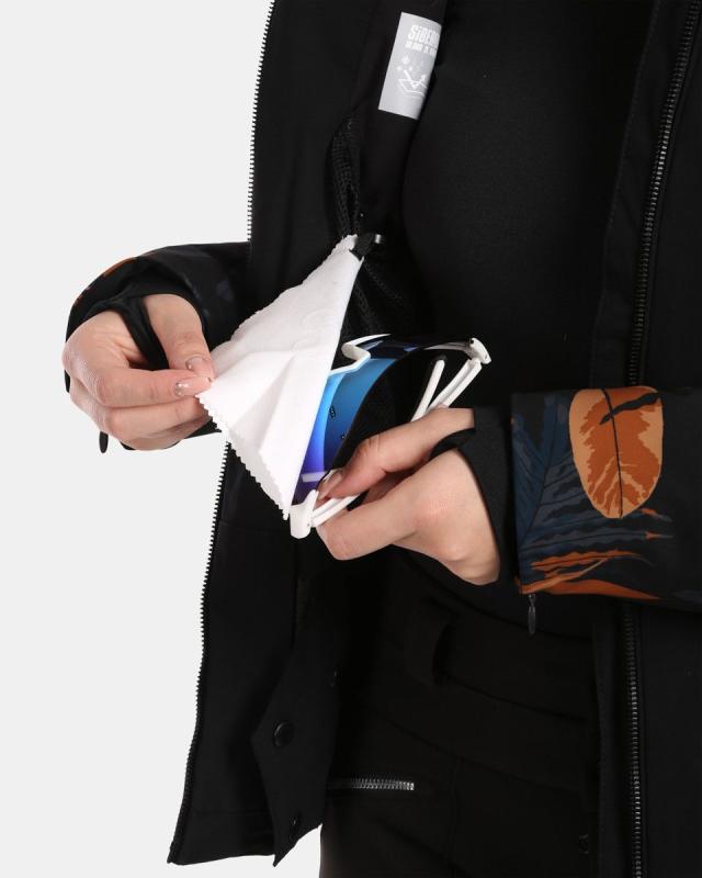 Rukávy s manžetou a zipem, odepínací protosněhový límec, dvě hlavní skryté kapsy, náprsní kapsy a jedna s hadříkem na čištění brýlí – to jsou vychytávky, které na svahu oceníte.