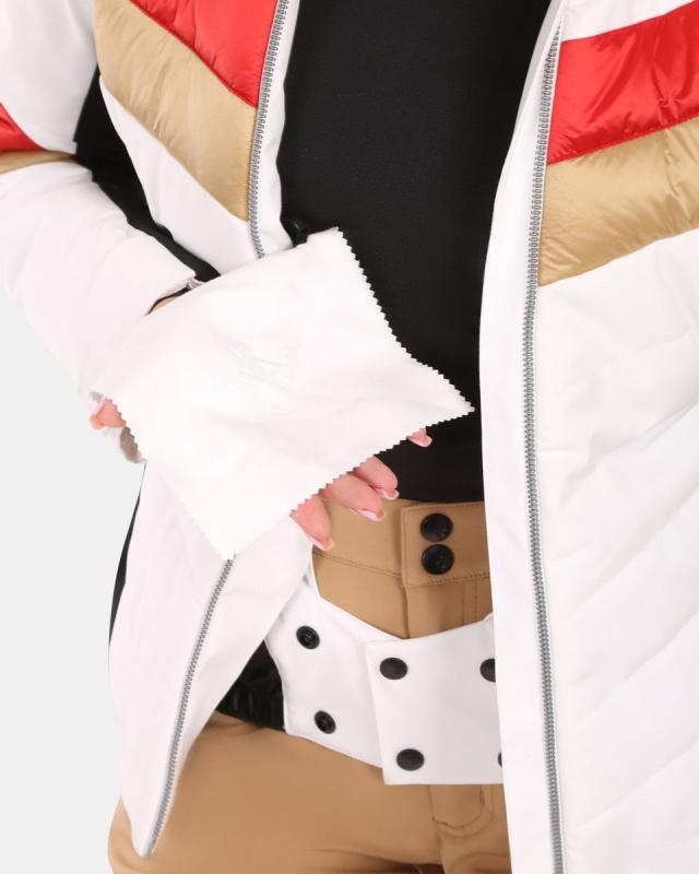 Medzi ďalšie užitočné detaily patria rukávová kapsa na skipass, vnútorná kapsa vybavená handričkou na čistenie okuliarov a protisnehový golier, ktoré prispievajú k pohodliu a praktickosti počas lyžovania.