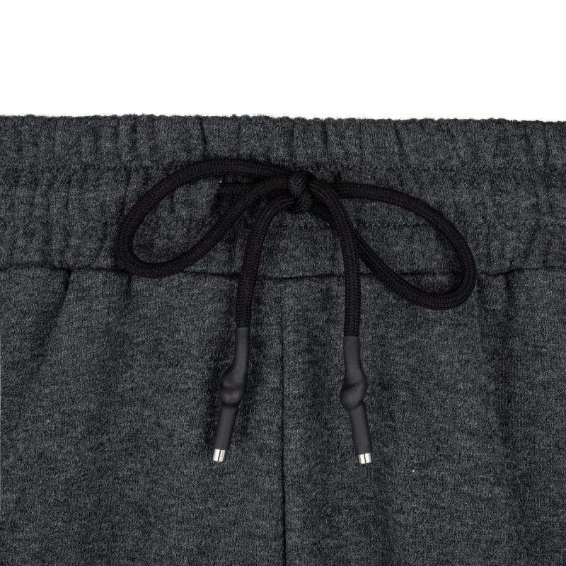 Široká guma v pase se stahováním na šnůrku netlačí a nezařezává se. Nechybí dvě kapsy. Konce nohavic jsou ukončeny úzkým lemem.