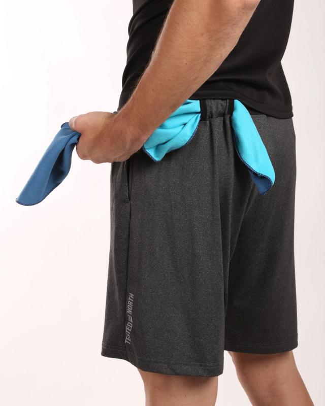 Šortky majú elastickú gumu v páse so sťahovaním na gumičku. Na zadnom diely je umiestnené chytré očko na uterák alebo tielko. Nájdete tiež schovanú kapsičku na kľúče, integrovanú v páse. Materiál šortiek v kombinácii so sieťovanou vsadkou je veľmi ľahký, vzdušný a rýchloschnúci.