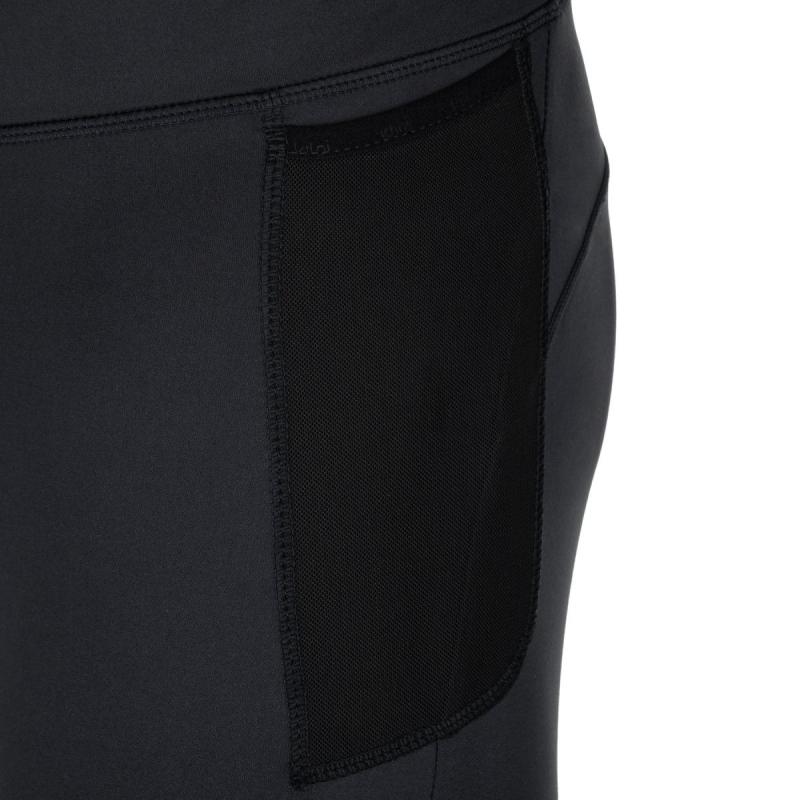 Rychleschnoucí materiál OPTI-DRY odvádí pot od pokožky na povrch látky, je příjemný na dotek a neprosvítá. V pase mají legíny pohodlnou širokou gumu se stahováním. Boční síťovaná kapsa je dostatečně velká na mobil. Tvarovaný střih a šití plochými švy zaručí maximální pohodlí při pohybu. Síťované vsadky pod koleny zlepšují prodyšnost. Univerzální černá barva je doplněna reflexními prvky, které jsou dobře viditelné ve tmě.