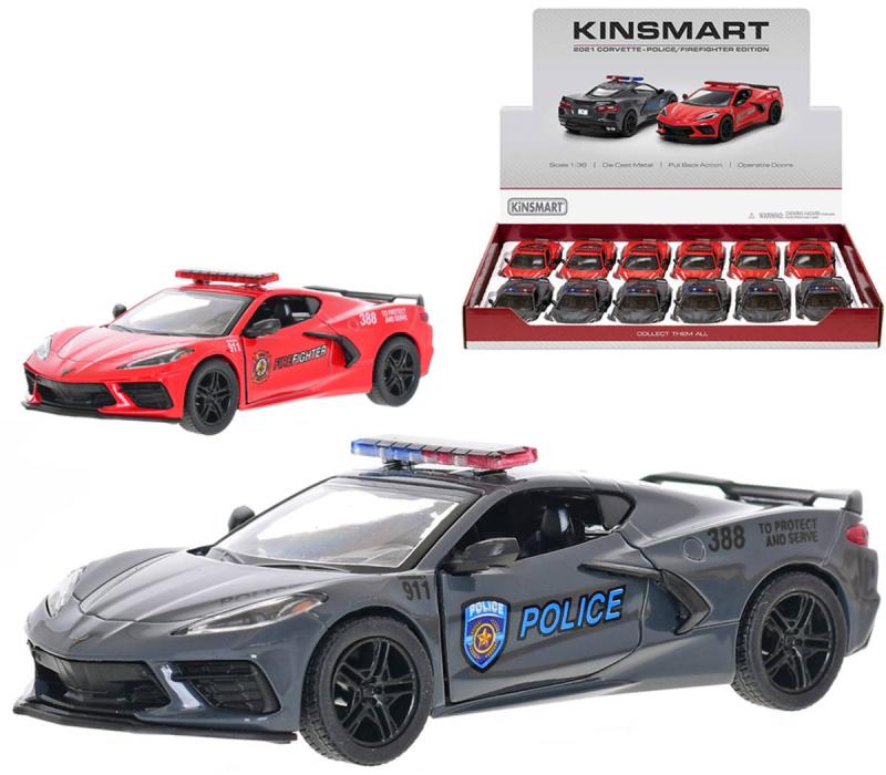 Kinsmart Auto model 1:36 Corvette 2021 záchranné složky PB 13cm 2 druhy