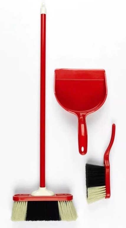 Dětský úklidový set obsahující velký smeták, menší smetáček a lopatku v červené barvě. Tuto sadu uvítá každá malá hospodyňka či pomocnice v domácnosti. Zametání je nenáročné, takže se nemusíte bát, že by dítka něco mohla zkazit.