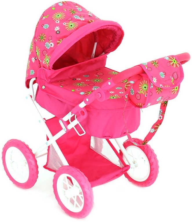 Kočárek pro panenku miminko 56x36x64cm růžový s taškou na držadlo