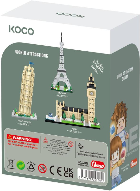 Stavebnice KOCO, to jsou velké příběhy v malých detailech. Sestavte si krásný model Big Benu. Skvělý tip pro procvičení jemné motoriky rukou. Balení obsahuje podrobný obrázkový návod.