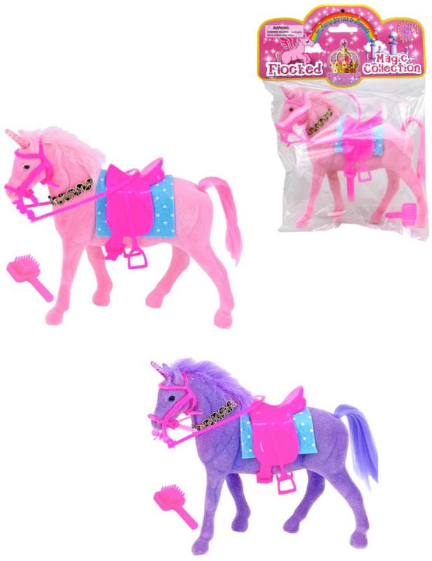 Koník fliškový jednorožec 17cm set s náhrdelníkem a doplňky 2 barvy flíska