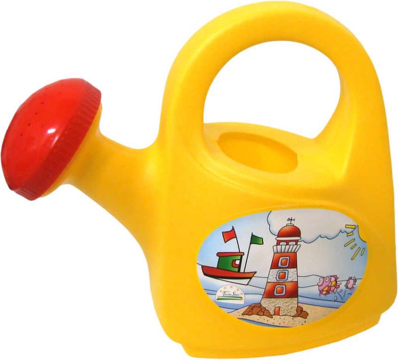 Plastová zahradní konev s růžicí z plastu pro děti - malé zahradníky, na zalévání na zahrádku, ve třech barevných variantách, s obrázkem (pláž, maják a další)
