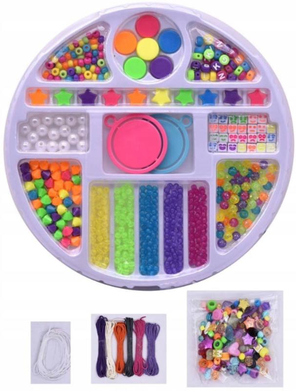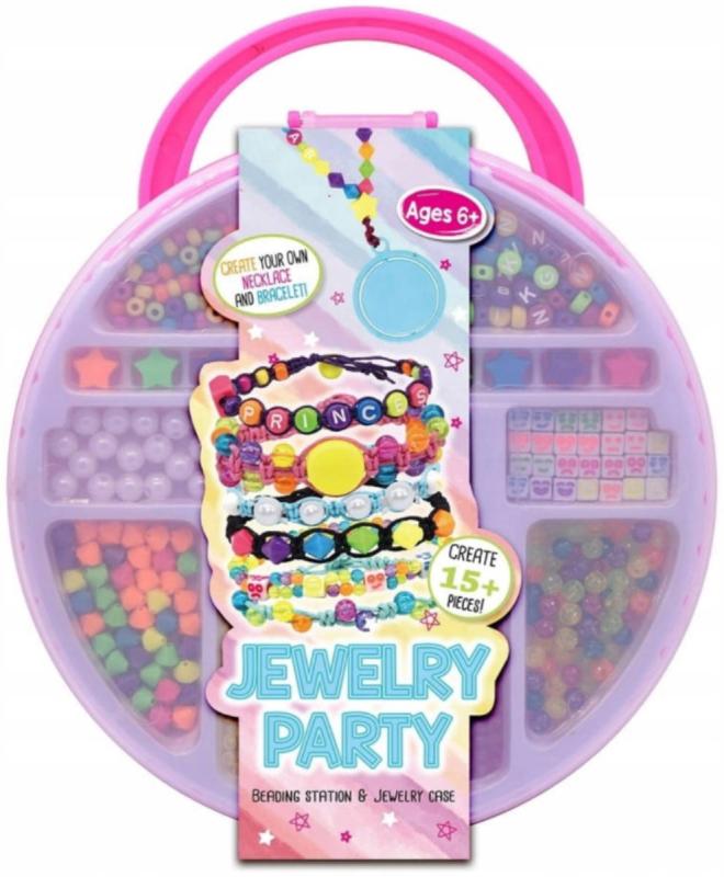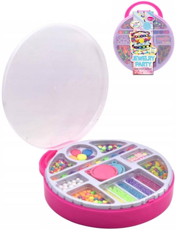 Sada korálků na výrobu vlastních náramků a náhrdelníků. Sada obsahuje korálky různých barev a tvarů, šňůrku. Praktické balení kulatého kufříku s uchem a dělenými přihrádkami na korálky. Vhodné pro děti od 6ti let.