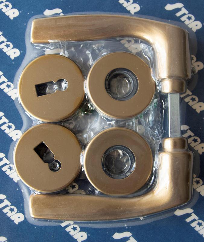 Kování v provedení rozeta v praktickém blistru s kompletním spojovacím materiálem k upevnění.