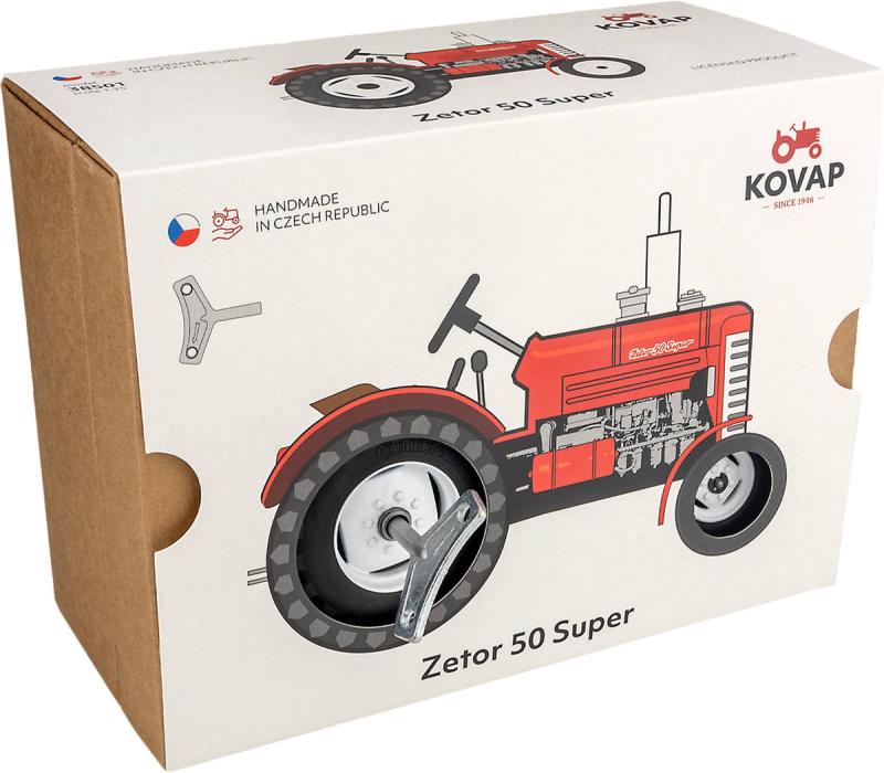 Traktor Zetor 50 Super. Pohon plechové hračky zajišťuje mechanický pérový strojek natahovaný klíčkem. Traktor má čtyřrychlostní převodovku. Disponuje třemi rozdílnými rychlostmi vpřed, zpátečkou a neutrálem. Je rovněž vybaven ruční brzdou. Přední náprava je řiditelná volantem. Měřítko 1:25.