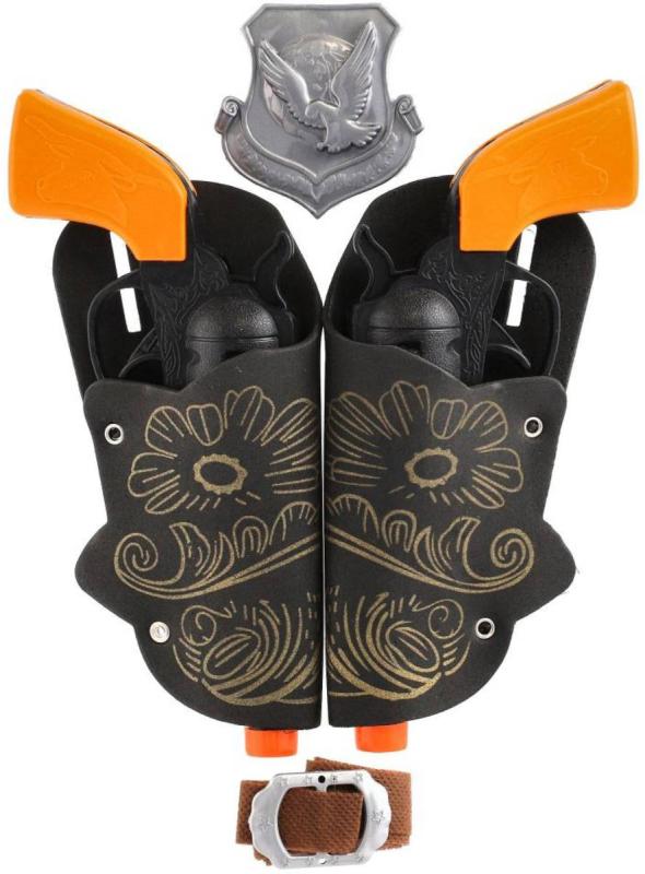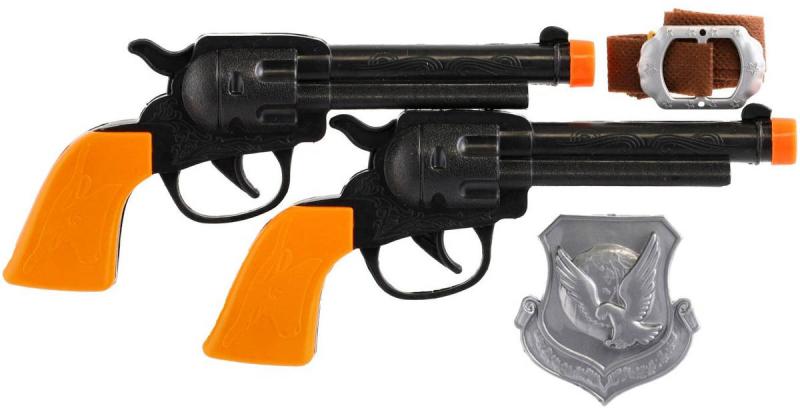 Život kovboje je snem spousty chlapců. S touto sadou pistolí se svému snu lehce přiblíží. Staň se odvážným strážcem zákona na Divokém západě! Tato sada obsahuje dva plastové kolty, opasek a odznak šerifa. Ideální doplněk ke kostýmu nebo pro dětské hry na kovboje a indiány.