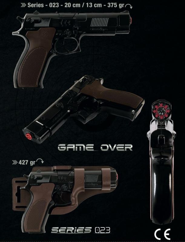 Kovová pistole serie 023 na kapslíkové kotoučky černá s pouzdrem