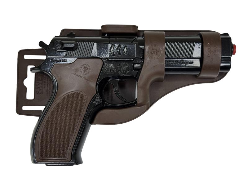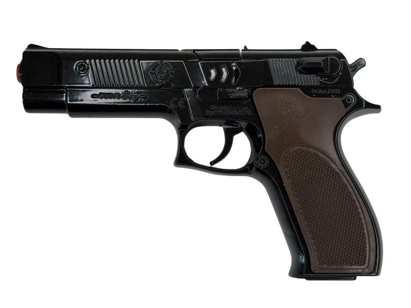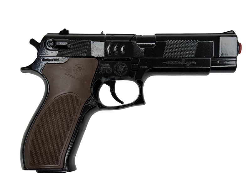 Tato pistole s kovovým tělem nabízí kombinaci odolnosti a realistického vzhledu, který zaujme jak sběratele, tak děti při hře.