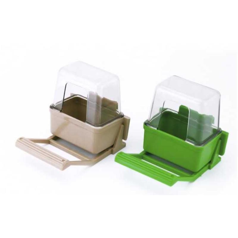 Plastové krmítko je určené k umístění dovnitř klece.