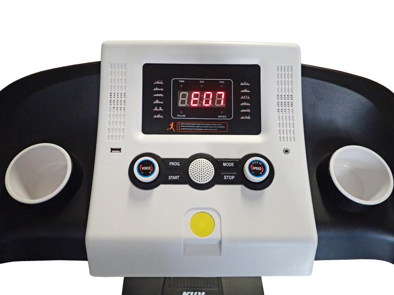 Jednoduchý, ale perfektně čitelný displej umožňuje sledování nejdůležitějších údajů o běhu v reálném čase. Na displeji lze sledovat čas běhu, rychlost, vzdálenost, tepovou frekvenci snímanou čidly v rukojetích a orientačně také spálené kalorie.