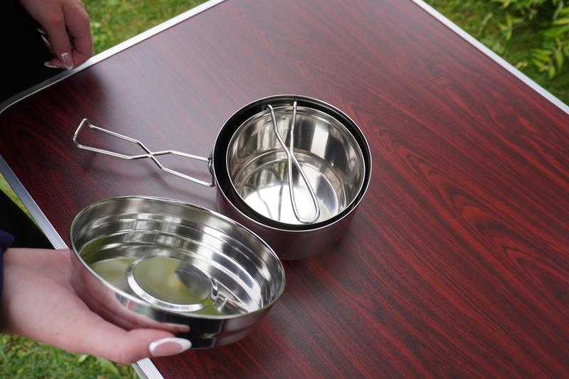 Vyrobená z nerezové oceli, sada garantuje dlouhou životnost a odolnost proti korozi a poškození. Celková hmotnost pouhých 480 g a kompaktní rozměry 16x11 cm z ní dělají ideální volbu pro turisty a horolezce, kteří chtějí na svých cestách šetřit každý gram hmotnosti. Držák a praktická západka na pokličce zajistí, že se sada při přepravě nerozloží, což zvyšuje její přenositelnost a snadné skladování.