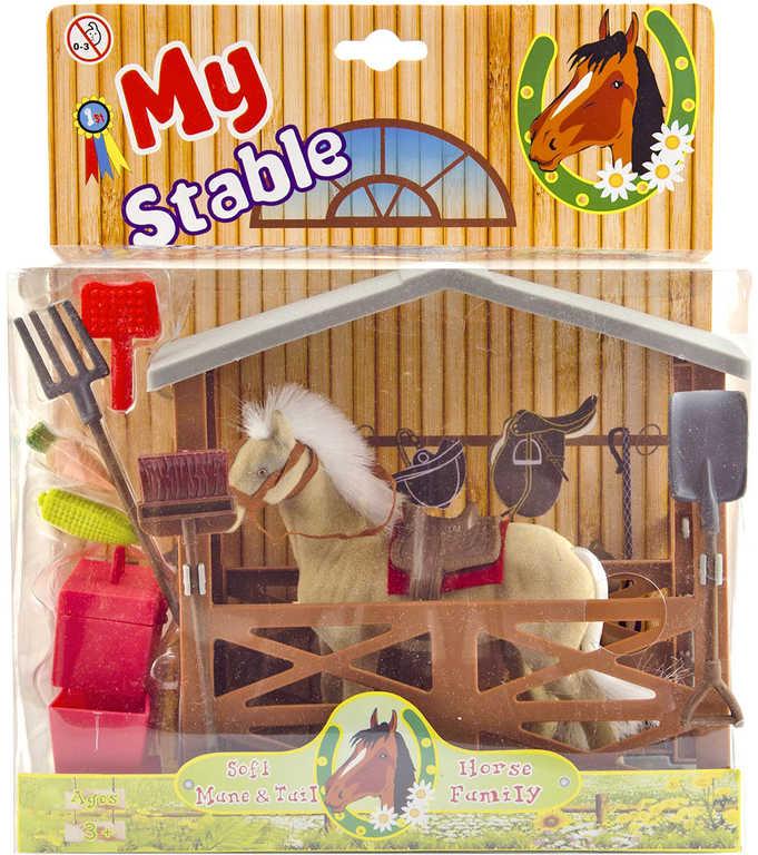 Kůň flískový herní set se stájí a doplňky na kartě plast