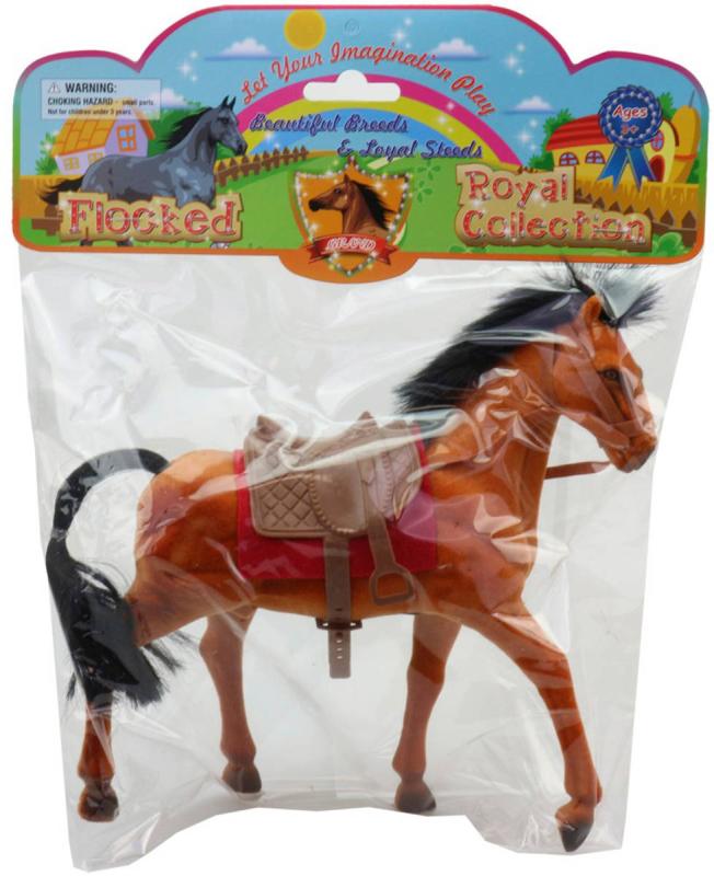 Kůň fliškový se sedlem a otěžemi 21cm dlouhá hříva flíska