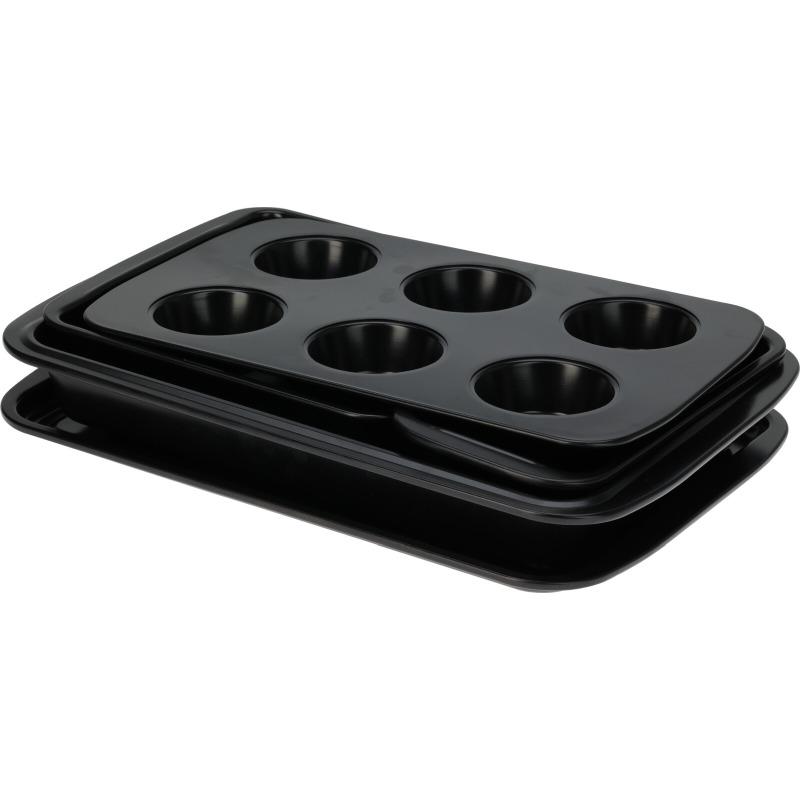 Objevte kompletní pečicí sadu z kvalitní uhlíkové oceli s odolným nepřilnavým povlakem, která vám umožní připravit chléb, koláče, muffiny i cukroví s maximálním komfortem. Díky univerzálním velikostem a elegantnímu šedému designu je tato sada ideální volbou pro každodenní pečení. Nepřilnavý povrch zajistí snadné vyklápění i čištění, zatímco pevný materiál garantuje dlouhou životnost a rovnoměrné rozložení tepla.