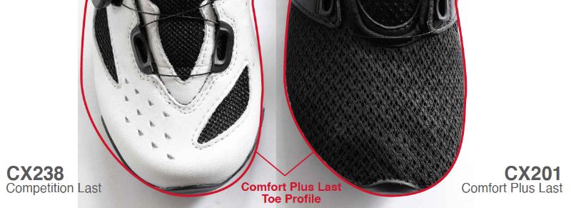- CX201 predstavuje úplne nový strih tretry so širšou a priestrannejšou špičkou a jedinečnou konštrukciou, ktorá ponúka nízku hmotnosť a extrémne priedušnú tretru s veľkorysým priestorom prednej časti, ktorá pojme mnoho tvarov chodidiel.