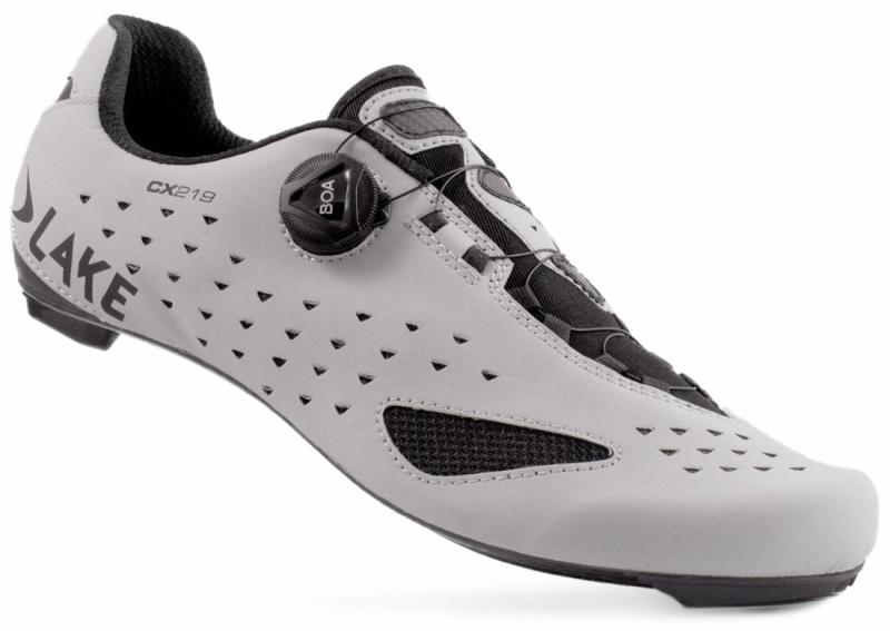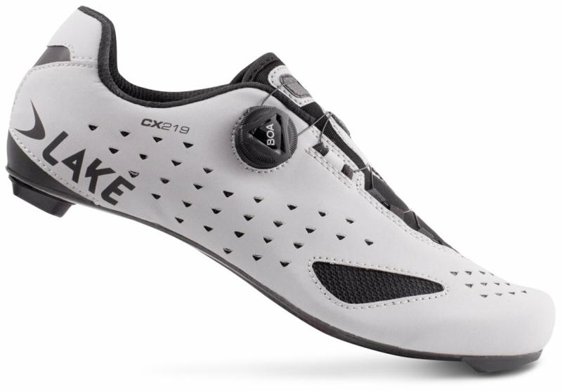 Závodné cestné tretry LAKE CX219 s jedným upínacím systémom BOA a 100% karbonovou podrážkou Lake Race zaisťujúcou požadovanú tuhosť s optimálnym prenosom sily na pedál. Zvršok modelu je vyrobený zo syntetickej kože Clarino Microfiber špecifickou svojou nízkou hmotnosťou a odolnosťou pri zachovaní vysokej priedušnosti. Svojimi vlastnosťami a funkciou sa približuje pravej koži. Navyše disponuje reflexnou úpravou, vďaka ktorej vás za zníženej viditeľnosti nikto neprehliadne.Zvršok