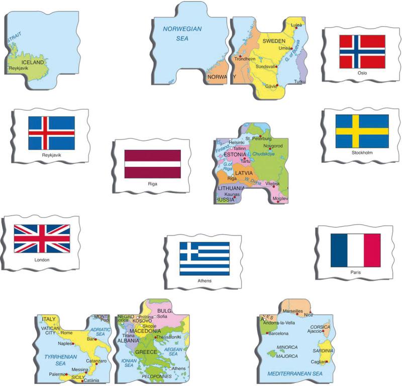 Švédsko, Řecko, Portugalsko. Najdete je na mapě? A víte, jakou mají vlajku a hlavní město? Všechny důležité informace zjistíte díky vzdělávacímu puzzle s mapou Evropy. Při skládání se děti zábavnou formou učí umístění evropských států, hlavní města a další významná města a vlajky. Puzzle je navrženo tak, aby bylo zábavné, ale také vzdělávací. Podporuje vizuální paměť a rozšiřuje geografické znalosti. Je to ideální doplněk výuky doma i ve škole. Kvalitní a pevné dílky zajistí pohodlné skládání a dlouhou životnost.