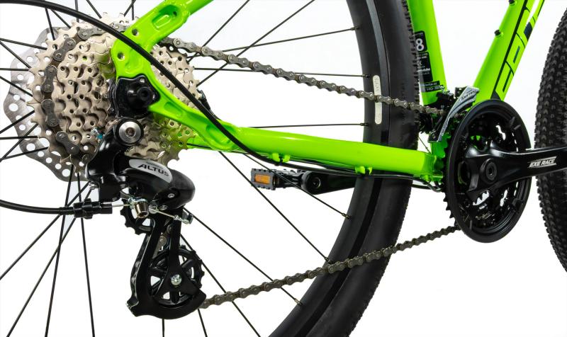 Řazení je rozděleno na levou stranu (Shimano ST-EF41, 3 rychlosti) a pravou stranu (Shimano ST-EF41, 7 rychlostí), což usnadňuje manipulaci a přizpůsobení se terénu. Kazeta má 7 rychlostí s rozsahem 11-34 zubů.