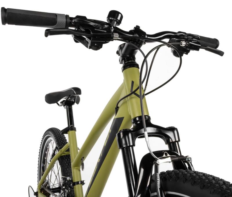 Ľahký detský horský bicykel s hliníkovým rámom, odpruženou vidlicou a 7 prevodmi Shimano pre pohodlnú jazdu v rôznom teréne.Detský horský bicykel je navrhnutý tak, aby mladým cyklistom umožnil bezpečne a pohodlne objavovať rôzne typy terénu, od cyklotrás cez spevnené cesty až po ľahšie terénne úseky. Vďaka spoľahlivému prevedeniu zvládne bicykel víkendové výlety, školské akcie i prvé samostatné vychádzky do prírody.