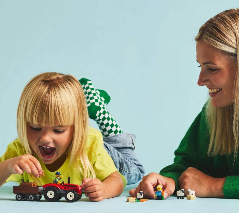 Vneste do pokojíčku své ratolesti kouzlo venkova se stavebnicí Červený traktor s přívěsem a ovcemi. Tato stavebnice je ideální pro děti od 4 let a součástí je červený traktor s odpojitelným přívěsem, košík s mrkví a 2 balíky sena. Stačí přidat minifigurky farmáře a jeho dcerky a figurky 2 ovcí, jehňátka a štěňátka a můžete se pustit do napínavého hraní na postavy a vymýšlení příběhů. Součástí této snadno sestavitelné stavebnice traktoru z kostek LEGO je začátečnická kostka LEGO, obrázkové pokyny a 3D návod v doprovodné aplikaci LEGO Builder, která obsahuje nástroje přibližování a otáčení, aby si děti mohly během stavění prohlížet modely ze všech úhlů.
