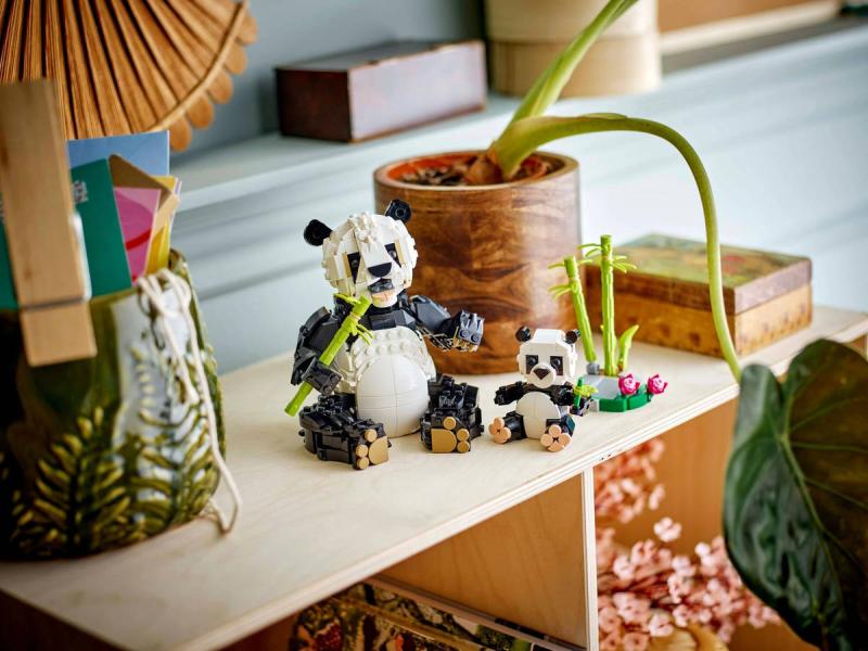 Děti od 8 let se podělí o lásku a zábavu se 3 zvířecími rodinkami se stavebnicí Divoká zvířata: Pandí rodinka. Model obsahuje dospělou pandu s pohyblivou tlamou, hlavou, krkem a tlapkami a roztomilé pandí mládě s bambusovým výhonkem, na kterém si může pochutnat. Děti si postaví 3 různé modely zvířátek LEGO ze stejné sady kostek: pohyblivou figurku pandy s mládětem a bambusovými výhonky, pohyblivou figurku kosatky s mládětem, které můžou vystavit společně na průhledných stojanech nebo pohyblivého tučňáka s mládětem na kousku ledu a vody. Všechny 3 modely představují skvělý dárek LEGO pro děti ke kreativnímu hraní i vystavení.
