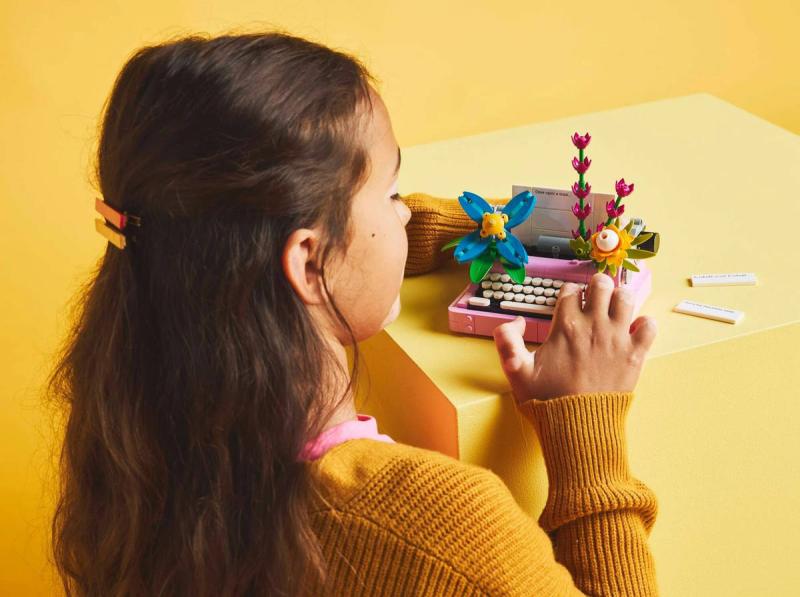 Potěšte malé milovníky květin, umění a designu stavebnicí Psací stroj s květinami. Tento miniaturní psací stroj pro holky a kluky od 8 let zdobí 4 barevné květiny z kostek a součástí je pohyblivá klávesnice, válec a list papíru z kostek. Fanoušci LEGO mají na výběr ze 3 různých květinových stavebnic: postaví si psací stroj s květinami; keytar na stojanu s květinami nebo květináč s perem a sešitem. Součástí přestavitelné stavebnice jsou také 3 samolepky s milými frázemi, kterými děti modely z kostek dozdobí.