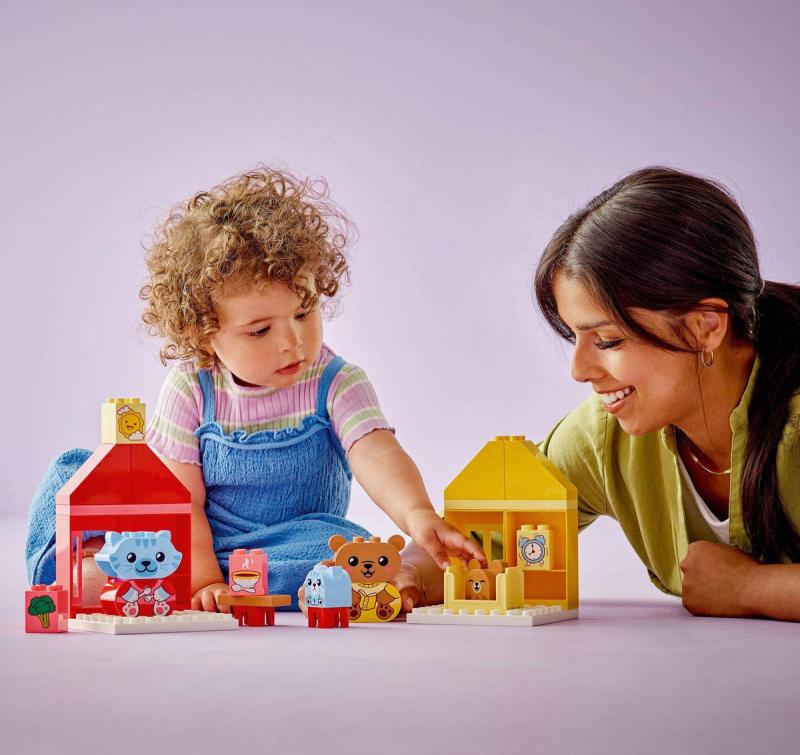 Stavebnice LEGO DUPLO představují skvělý způsob učení hrou. Zábavné interaktivní hraní příběhů a figurky rodičům umožní batolatům vysvětlit, co jsou každodenní aktivity a proč jsou tak důležité. Malé děti při stavění 2 domečků z barevných kostek prohloubí své jemné motorické schopnosti. Každá činnost má přiřazenou vlastní barvu, takže stavení je přímo hračka!