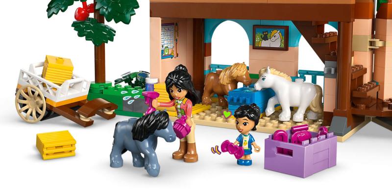 Představujeme vám stavebnici, kterou si zamilují všichni milovníci koní! Stavebnice Ranč s poníky a stáj inspiruje holky a kluky od 7 let k vymýšlení vlastních příběhů o přátelství a zvířátkách. Součástí je sestavitelný ranč s poníky se stájemi a obytnými prostory, vozík, 2 minipanenky, 2 mikropanenky, figurka kočky, 3 figurky poníků a spousta doplňků pro kreativní hraní. Děti se vydají na nekonečná dobrodružství s Aliyou, Liann, Victorií a Ellou. Hřebelcování a krmení 3 poníků bude spousta zábavy! Dokonce tu najdete i funkční výtah na seno, s jehož pomocí přemístíte balíky sena do seníku nebo na vozík. V ranči je útulný obývací prostor a seník, ve kterém budou kamarádky spát nad stájí – splněný sen každého milovníka koní!