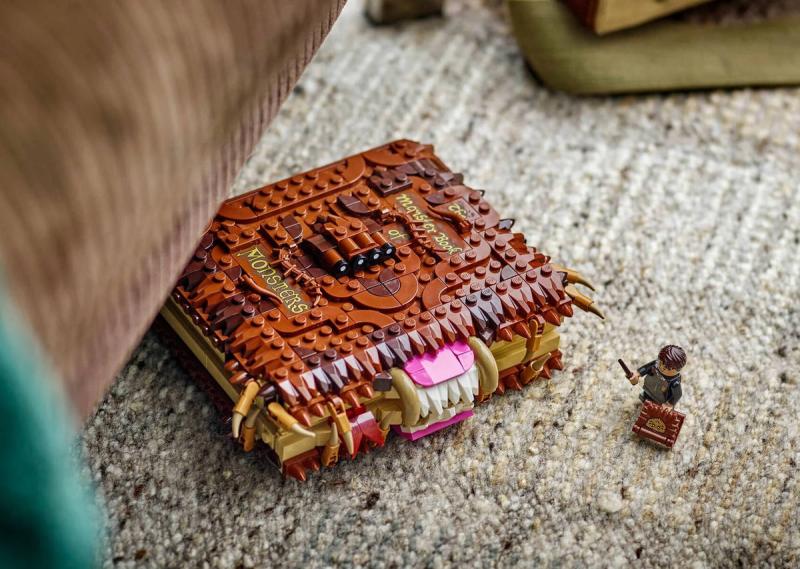 Darujte malému kouzelníkovi, čarodějce nebo mudlovi hodiny kouzelného hraní se stavebnici Harry Potter Hryzající kniha Obludné obludárium. Tato zábavná fantasy stavebnice obsahuje propracovanou kostkovou repliku Obludného obludária, učebnice o péči o kouzelné tvory. Model má skrytá kola a natahovací funkci – knihu položte na rovnou plochu, natáhněte, pusťte ji a sledujte, jak se řítí pryč a při tom žvýká. Tato stavebnice pro děti představuje kouzelný vánoční nebo narozeninový dárek pro kluky, holky a fanoušky Harryho Pottera od 9 let. Obsahuje minifigurku LEGO Nevilla Longbottoma s knihou Obludné obludárium. Sestavitelnou knihu a minifigurku lze zkombinovat s dalšími sběratelskými stavebnicemi LEGO Harry Potter (prodávají se samostatně) a děti si s ní užijí ještě větší porci magického hraní.