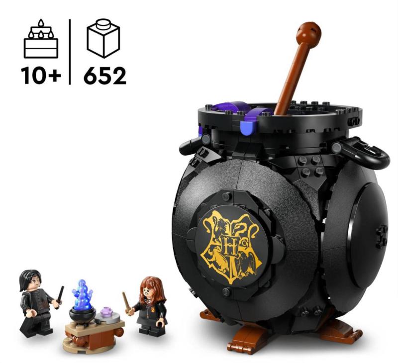 Darujte dětem kouzelnou stavebnici LEGO® Harry Potter™ na hraní i vystavení - kouzelný kotlík s tajnou učebnou lektvarů uvnitř. Posunutím míchátka odhalíte propracovanou učebnu s odnímatelnými lavicemi, lahvičkami s lektvary a přísadami z kostek LEGO. Zahrajte si na vlastní hodinu lektvarů v Bradavicích s minifigurkami profesora Snapea a Hermiony Grangerové. Najděte Hermionina patrona v podobě vydry, který je součástí kolekce patronů k 25. výročí řady LEGO Harry Potter (stavebnice se prodávají samostatně), a 1 ze 14 sběratelských bradavických portrétů Bublající kotlík z kostek se bude skvěle vyjímat na výstavce v pokoji a poslouží také jako skvělá halloweenská dekorace. Darujte tuto univerzální stavebnici jako kreativní dárek holkám, klukům a fandům Harryho Pottera od 10 let.
