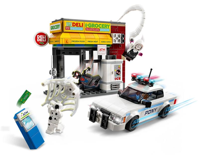 Spider-Verse: Miles Morales vs. Flek je kvalitní stavebnice navržená pro fanoušky filmu Spider-Man: Napříč paralelními světy od studia Marvel od 9 let. Tato dobrodružná stavebnice LEGO představuje ideální dárek pro malé superhrdiny, fanoušky studia Marvel a děti, které mají rády sestavitelná kreativní dobrodružství. Stavebnice se Spider-Manem obsahuje 4 minifigurky: Milese Moralese, Fleka, Gwen Stacyovou a strážníka Jeffersona. Samoobsluha má zeď s funkcí výbuchu, která umožňuje vyjmutí bankomatu. Mezi doplňky najdete dlouhé, pružné pavučinové lano a pružnou pavučinu, do které se vejde i minifigurka. Policejní auto lze otevřít a dovnitř umístit 2 minifigurky. Stavitelé můžou přibližovat a otáčet modely ve 3D a sledovat svůj pokrok pomocí zábavné a intuitivní aplikace LEGO Builder pro ještě větší porci digitální zábavy.